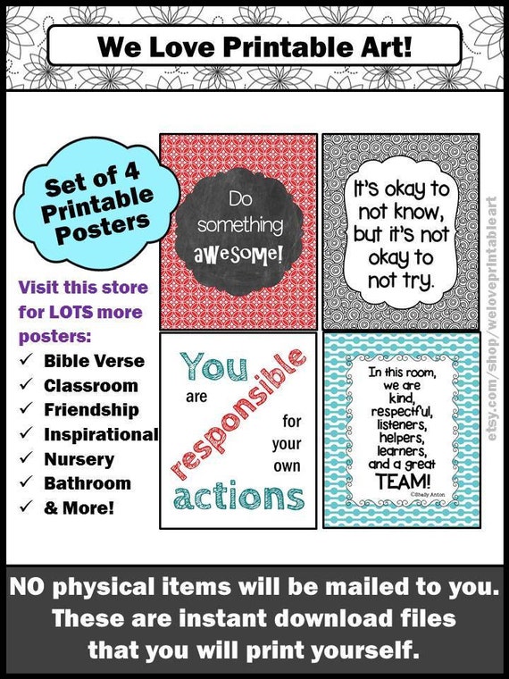 Teal And Red Classroom Posters Elementary Classroom Decor Etsy