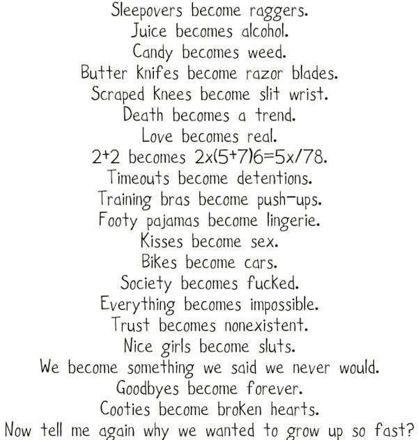 So Many People Try To Grow Up Too Fast And It S Not Fun You